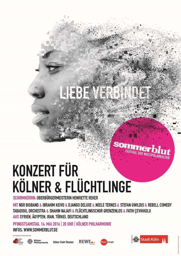 Mit dem Konzert „Liebe verbindet“ am 14. Mai 2016 in der Kölner Philharmonie setzt Sommerblut ein Zeichen für Toleranz, Vertrauen und ein positives Miteinander in unserer Gesellschaft. Das Konzert für Kölner und Flüchtlinge wird unterstützt von Hedwig NevenDuMont, vom Kölner Flüchtlingsrat, vom Forum für Willkommenskultur sowie vom Schirmherr des Sommerblut Kulturfestivals Jürgen Roters.