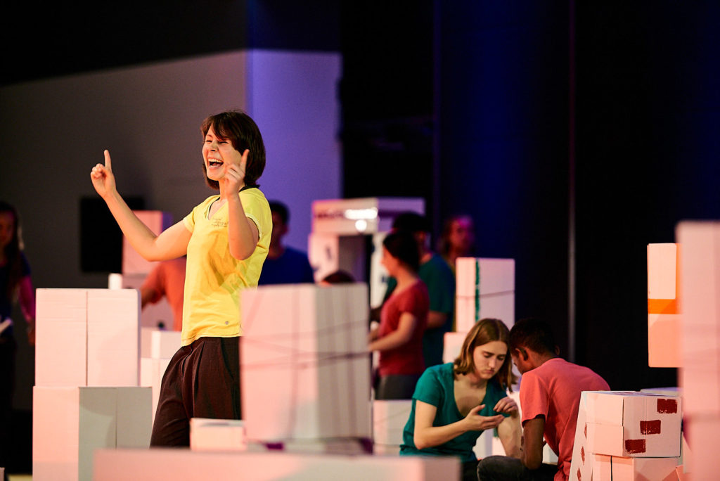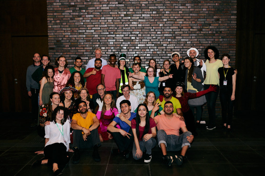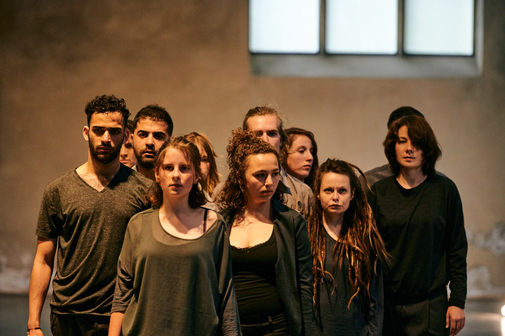 Regie: Barbara Wachendorff • Dramaturgie: Joachim Henn • Bühne: Christoph Rasche • Choreographie: Jadi Carboni • Musik: Peter Eisold • Kostüme: Monika Odenthal • Licht/Ton: Christian Herbert • Regieassistenz: Miriam Meißner • Projektassistenz: Jule Klemm • Coaching: Silvana Buchwald • Produktion: Rolf Emmerich • Cast: Sleman Al Ahmad, Celina Albayrak, Ashraf Albesh, Mel Bialas, Mahmoud Chala, Natalie Dedreux, Khalaf Sabri Dawood, Uri Dialo, Sven Djurovic, Dodzi Dougban, Olga Daryna Drachuk, Joséphine Favre-Tailllaz, Eva Junge, Mohammad Kahn, Kathrin Lämmermann, Paula Mai, Josua Mettbach, Johanna Miller, Elisabeth Pless, Lukas Romes, Mohamed Ben Salah, Saya Salman, Teresa Stoller, Sergej Usov, Toni Weinrich • Audiovisual composition »BLAST!«: Gudrun Barenbrock (Video), Angelika Sheridan (Flute), Frank Niehusmann (Elektronic)